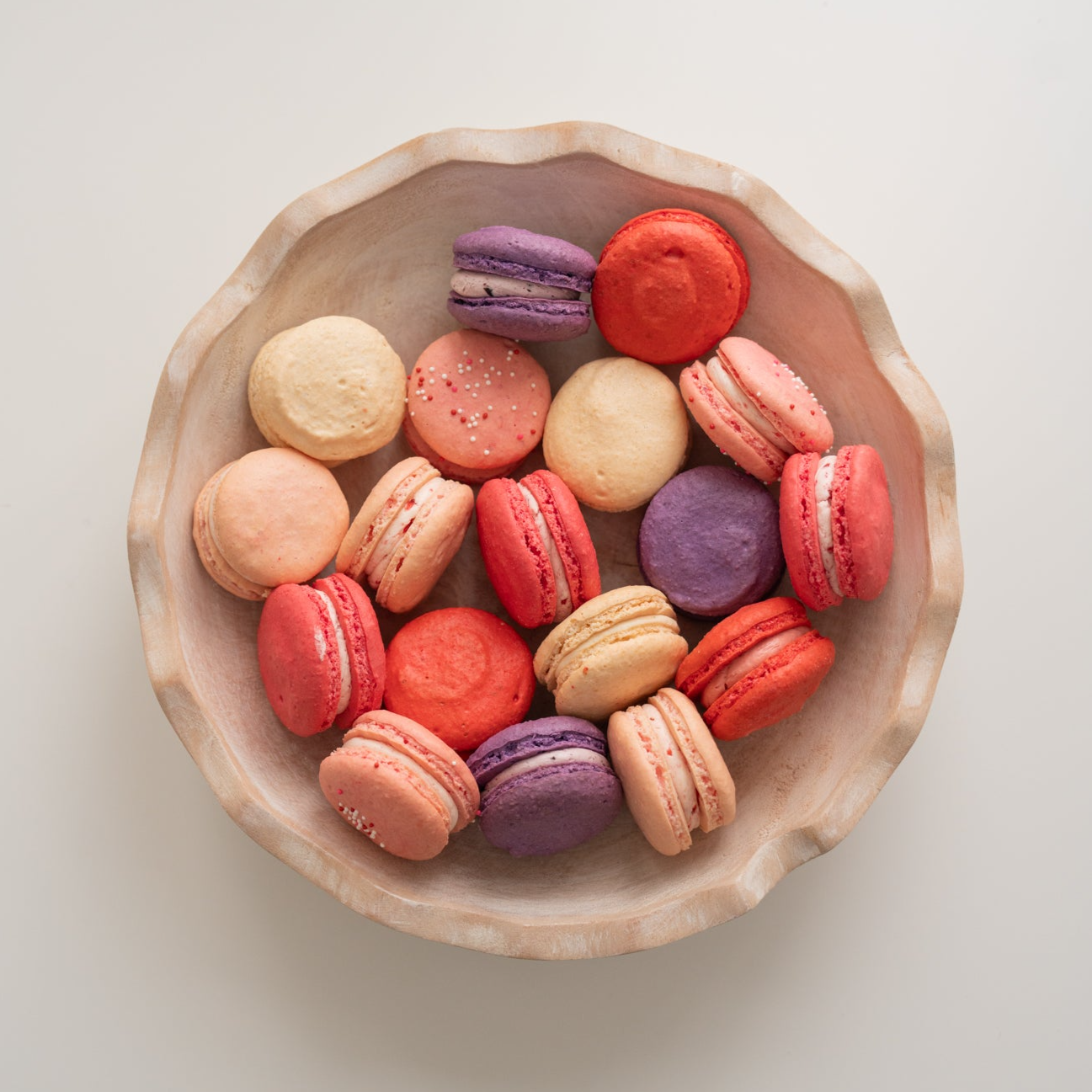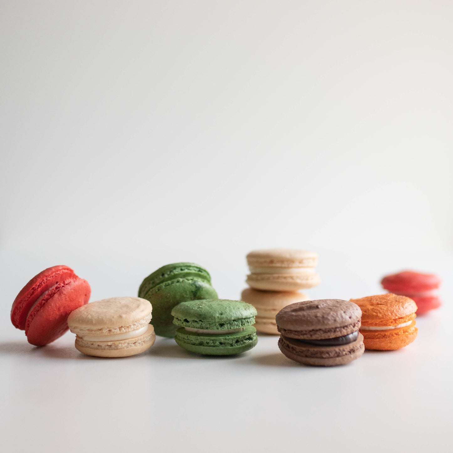 Dive into a world of delightful flavours and vibrant colours with our handcrafted assortment of macarons. Each bite-sized treat features a crisp outer shell and a decadent, creamy filling that's sure to satisfy any sweet tooth.